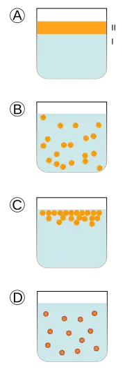 - coalescența particulelor mici interne cu globulele de interfață