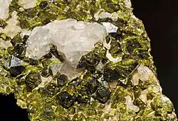 Roca ce este formată din cuarț și epidot este cunoscută sub denumirea de epidosit. Cristalele bine dezvoltate se găsesc în multe locuri; în Knappenwand, în apropiere de Großvenediger din Salzburg (aici se găsesc cristale magnifice, negre, cu habitus prismatic lung, în cavități de roci, și în șisturi de epidot, cu minerale ca azbestul, adularul, calcitul și apatitul); în valea Ala și Traversella în Piemont; Arendal în Norvegia; Le Bourg-d'Oisans în Dauphiné; Haddam în Connecticut; Inslua Prince of Wales în Alaska (aici cristalele sunt largi, negre-verzui, tabulare, împreună cu roci de cupru și calcar metamorfozat).
