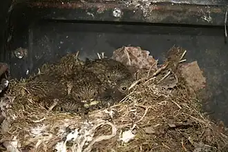 - ↑ Robin Fledging From a Tea Pot Nest. YouTube
