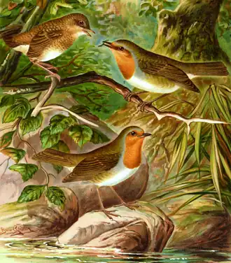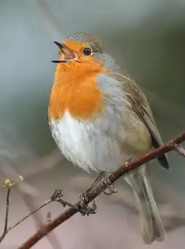 - 1 2 3 Chantrey D. F. and Workman L. (1984). Song and plumage effects on aggressive display by the European Robin Erithacus rubecula. Ibis 126, 366-371.