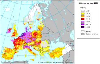 - ↑ Smith, V. H.; Tilman, G. D.; Nekola, J. C. (1999). "Eutrophication: Impacts of excess nutrient inputs on freshwater, marine, and terrestrial ecosystems". Environmental Pollution (Barking, Essex : 1987). 100 (1–3): 179–196. doi:10.1016/S0269-7491(99)00091-3. PMID 15093117.