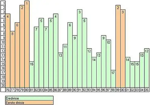 Poziții ocupate de FC Groningen în Eredivisie între 1976-2005