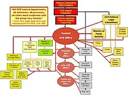 Potrivit lui Johnson, campania împotriva Falun Gong se extinde în multe părți ale societății, inclusiv la aparatele de mass-media, la forțele de poliție, la armată, la sistemul educațional și la locurile de muncă.[101] Un corp extra-constituțional, "Biroul 610" a fost creat pentru a “supraveghea” acest efort.[3][131][141] Human Rights Watch (2002) a remarcat că familiile și locurile de muncă au fost forțate să coopereze cu guvernul.[114]