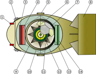 A constat dintr-o sferă de 140 cm diametru care a fost încadrată într-o formă de pepene verde cu exterior aerodinamic, la care s-au alăturat componente suplimentare necesare pentru încărcare și transport, cât și echipamente pentru folosirea bombei pe un câmp de luptă, ca siguranță, sistem de radar, balamale, stabilizator de aluminiu coadă, barometru, ceasuri, antenă etc.