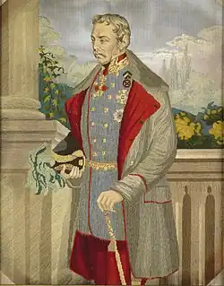 - ↑ Antonio Schmidt-Brentano: „Kaiserliche und k. k. Generale (1618–1815)”, Österreichisches Staatsarchiv, Viena 2006, p. 3