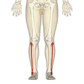 ![]() Cross section of human lower leg, showing fibula in centre (latin terminology) | |