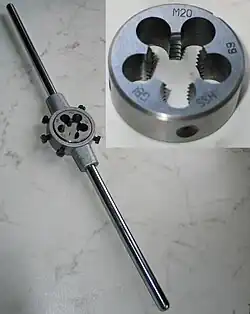 Se realizează folosind un tarod prins într-o manivelă pentru tarozi (vezi imaginea alăturată).