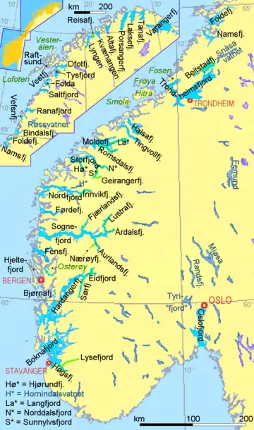 - ↑ „What is a Fjord, and how is it formed”. Norway Today (în engleză). . Arhivat din original la . Accesat în .
