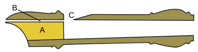 Este construit din lemn sau material plastic. Cavitatea rezonantă este conică, cu o extremitate superioară ușor mai largă decât cea inferioară, ceea ce duce la predominanța armonicelor impare în sunet[1]. În partea superioară prezintă un orificiu numit ambușură sau (lat. labium), prevăzut cu un canal trapezoidal. Coloana de aer este direcționată (B) spre o deschizătură (C) - șanț longitudinal care se găsește în peretele tubului în partea din față - și are formă de canelură. O parte din aer intră în tub, iar restul se pierde în afara lui. Instrumentul prezintă pe partea frontală un număr variabil de orificii digitale (șapte, dintre care cele mai îndepărtate două de ambușură pot fi găuri duble) și unul singur pe partea din spate.