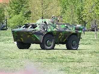 | TAB-71 | ![]() | Transportor blindat pentru trupe | TAB-71M TAB-71A TAB-71AR TERA-71L | 669[6] | BTR-60 fabricat sub licență. Urmează să fie înlocuit prin programul național „Transportor blindat pentru trupe 8×8.”