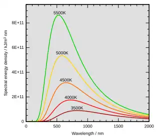unde g este o funcție de o singură variabilă. Conform legilor lui Kirchhoff, funcția I(λ,T) (sau I(ν,T)) este legată în mod simplu de densitatea de energie u(λ,T) (sau u(ν,T)) a radiației corpului negru raportată la unitatea de lungime de undă (sau de frecvență):
