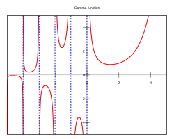 Identitatea (1) poate fi folosită și pentru a extinde Γ(z) la o funcție meromorfă definită pentru toate numerele complexe z în afara lui 0 și pentru numerele întregi negative (se poate calcula că z = −n este doar un pol cu reziduul (−1)n/n!).[1] Această versiune extinsă este numită de obicei funcție gamma.