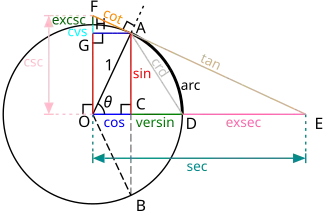 Câteva funcții derivate ale acestora au fost utilizate de-a lungul istoriei (și au apărut în unele tabele vechi), dar în zilele noastre sunt rar folosite, astfel de exemple fiind funcția versinus (1 − cos θ) și funcția exsecantă (sec θ − 1).