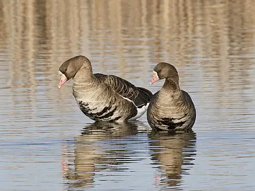 - 1 2 BirdLife International (). „Anser albifrons”. Lista roșie a speciilor periclitate IUCN. Versiunea 2013.2. Uniunea Internațională pentru Conservarea Naturii. Accesat în .