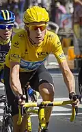 • În cursele de ciclism, tricoul galben – sau maillot jaune – este purtat de liderul clasamentului general. Clasamentul se întocmește prin însumarea timpilor obținuți de fiecare ciclist în fiecare etapă. Ciclistul cu cel mai mic timp astfel totalizat, primește la sfârșitul fiecărei etape un tricou galben și dreptul de a porni primul în etapa următoare, îmbrăcat în respectivul tricou.[25] Tradiția a fost începută în Turul Franței, unde ziarul L'Auto (mai târziu L'Équipe) care era sponsor a fost tipărit pe o hârtie de ziar galben distinctiv.