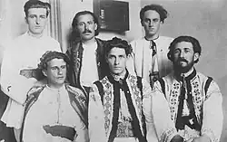 În picioare de la stânga la dreapta: Corneliu Georgescu, Tudosie[1][2][3] Popescu (cunoscut și ca Tudose Popescu[1][4]) și Ion I. Moța; așezați: Radu Mironovici, Corneliu Zelea Codreanu și Ilie Gârneață.