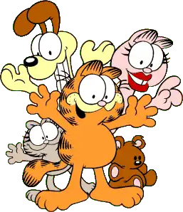 ![]() Centru: Garfield (în sensul acelor de ceasornic de la stânga jos: Nermal, Odie, Arlene și Pooky) | |