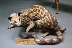 - ↑ Genus Genetta in "Don E. Wilson, DeeAnn M. Reeder. Mammal Species of the World : A Taxonomic and Geographic Reference. Johns Hopkins University Press; 3rd edition, 2005"