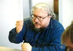 George Raymond Richard Martin[30] (n. , Bayonne(d), New Jersey, SUA), cunoscut și sub acronimul GRRM[31], este un autor american de fantasy, horror și science fiction, precum și scenarist și producător. Este faimos pentru Cântec de gheață și foc, seria sa fantasy cu succes internațional pe care HBO a ecranizat-o în serialul Urzeala tronurilor. Martin este coproducător executiv al seriei și a scris câte unul din cele 10 episoade ale fiecărei serii. Revista Time l-a plasat în anul 2011 în "Time 100", o listă a „celor mai influenți oameni din lume”.[32][33].