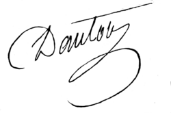 Georges Jacques Danton (n. 26 octombrie 1759, Arcis-sur-Aube, Departamentul Aube - d. 5 aprilie 1794, Paris), avocat și om politic, a fost unul din conducătorii Revoluției franceze și conducătorul primului Comité de salut public (până în 10 iulie 1793)[9]. A fost cunoscut pentru talentul său oratoric. A fost fondator al Clubului cordelierilor, membru al Comitetului Salvării Publice și ministru de justiție după răscoala din 10 august 1792. Acuzat de moderație și de trădare de către robespierriști pentru că a cerut încetarea terorii, a fost în final ghilotinat.