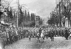 După Revoluția Rusă din 1917, a fost înființată Republica Federativă Democrată Transcaucaziană, avându-l pe Nikolay Chkheidze în calitate de președinte. Federația era compusă din trei națiuni: Georgia, Armenia și Azerbaidjan.[39] Pe măsură ce otomanii avansau în teritoriile caucaziene ale Imperiului Rus în descompunere, Georgia și-a declarat independența la data de 26 mai 1918. Partidul Social-Democrat Menșevic din Georgia a câștigat alegerile parlamentare, iar liderul său, Noe Zhordania, a devenit prim-ministru. În ciuda preluării sovietice, Zhordania a fost recunoscut ca șef legitim al guvernului georgian de către Franța, Regatul Unit, Belgia și Polonia în anii 1930.[40][41]