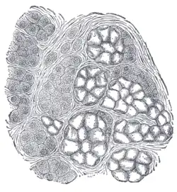 Secţiune a glandei submaxilare la pisoi. Canal semidiagramatic.
