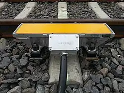 - baliză avertizoare – semnal montat înaintea semnalului prevestitor, care atrage atenția mecanicului de tren că se apropie de stație; este de culoare albă cu mai multe dungi negre.