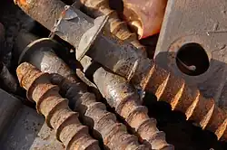- tirfon(d) – șurub de fromă specială, cu filet triunghiular folosit pentru fixarea șinelor pe traverse.