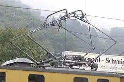 - ancoră mediană - dispozitiv de fixare a suspensiei catenare în scopul evitării deplasării acesteia în direcția deplasării locomotivei, ca urmare a forței de frecare dintre pantograf și firul de contact sau datorită greutății proprii (la calea cu declivități).