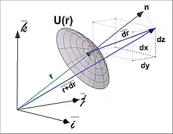 Considerând un câmp scalar descris de vectorul de poziție , asociind fiecărui vector o valoare scalară U. Evaluând derivata totalä: