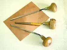 Uneltele pentru tipar înalt sunt de regulă ace sau alte instrumente ascuțite, de metal cu ajutorul cărora se zgârie suprafața netedă a plăcii (din metal moale precum cupru ori zinc). Odată zgâriat desenul este acoperit cu un strat fin de cerneală tipografică. Cu ajutorul unei pânze apretate se elimină cerneala în surplus și se acoperă cu o hârtie (de regulă umedă), iar apoi prin presare se transferă desenul de pe placă pe hârtie. Astfel procesul poate fi repetat, teoretic fără a avea diferențe între exemplare.