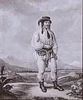 Franz Jaschke, Țăran din Transilvania, 1821, acvaforte, acvatinta colorată