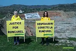 În 2016 Greenpeace a organizat o acțiune la Runcurel[52] împotriva exproprierilor abuzive pentru extinderea de cariere de cărbune.