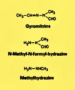 Otrava este foarte puternică: Cantitatea letala a Giromtrinei este de aproximativ 1-2 g pentru un adult. Monometilhidrazina este mult mai toxică: aici ajung deja 4–8 mg per kg de greutate corporală.[26]