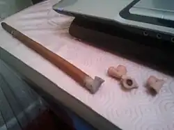 - fabricarea unei țigări prin rularea conținutului format din hașiș sub formă de pulbere amestecat cu tutun într-o foiță de hârtie (engleză: joint);