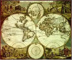 - cadrul hărților, poate fi desenat sub o formă complexă ori simplă, în cel din urmă caz având aspectul liniei ce delimitează suprafața cartografică a desenului.[2]