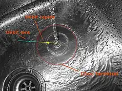 Este ușor de făcut o analogie cu heliogana dintr-o chiuvetă: apa care cade se îndepărtează uniform de punctul de cădere, dar numai atât cât îi permite presiunea. Atunci când apa se îndepărtează prea mult, presiunea sa scade și nu mai este posibil ca ea să se răspândească mai departe, în special din cauza apei care o înconjoară deja și care îi opune rezistență. Apa formează un cordon mai mult sau mai puțin circular în jurul punctului de cădere. În ansamblu, acest cordon este analog unei heliogane. Limita interioară a cordonului este șocul terminal.