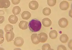 ![]() Globule roşii şi un limfocit văzute la microscop | |