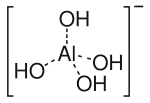 Hidroxidul de aluminiu Al(OH)3 este amfoter și se dizolvă în soluții alcaline formând anionul tetrahidroxoaluminat:[6]