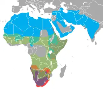 | Răspândirea speciilor de hiene pe glob | |