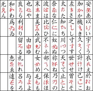 - ↑ NHK, WORLD. „The Japanese Syllabaries (Hiragana)” (PDF). www.nhk.or.jp.