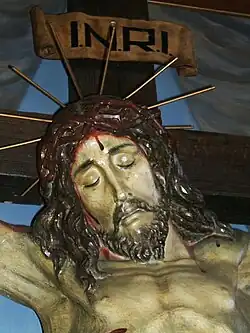 Evanghelia după Sf. Ioan (19,19): „Pilat a scris o însemnare, pe care a pus-o deasupra crucii, și era scris: Iisus din Nazaret, Regele Iudeilor.” (traducerea expresiei latine: Iesus Nazarenus Rex Iudaeorum).