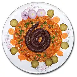 Se servește adesea cu cârnați prăjiți, costiță afumată sau alte afumături, preferat cu murături.[5]