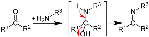 Metoda principală de obținere a iminelor este prin intermediul unei reacții de condensare al amoniacului sau al unei amine primare cu o aldehidă (sau mai rar cu o cetonă). Este vorba de o reacție de substituție nucleofilă ce are loc între o amină alifatică sau aromatică și un compus carbonilic (de tipul aldehidă sau cetonă). Mecanismul reacției este de substituție prin adiție nucleofilă urmată de eliminare de apă (deshidratare), iar adiția se face prin intermediul unui hemiaminal.