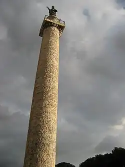 Sub împăratul Marc Aureliu, triburile germanice au lansat incursiuni asupra frontierelor europene ale imperiului, în special în Galia. A dus expediții militare împotriva acestora și și-a comemorat victoria prin construirea columnei dedicate lui. În Orient a condus o expediție împotriva Parției. Acesta și-a trimis co-împăratul, Lucius Verus, să comande legiunile în est pentru a le câstiga loialitatea. În 166 a trimis ambasadori romani, probabil negustori și nu diplomați, în China, regatul Han de Est, ce i-au adus ofrande și cadouri împăratului Huan. Chinezii au achiziționat piese de sticlă romană după cum ne indică mormintele chinezești, în vreme ce romanii achiziționau mătase adusă pe Drumul Mătăsii, o rețea de rute din Asia Centrală. În 175 Marc Aureliu a condus campanii în nordul Germaniei în cadrul Războaielor Marcomanice și a înăbușit rebeliunea generalului Avidius Cassius care s-a proclamat împărat în Egipt și Siria. Acesta a fost asasinat și Marc Aureliu a recăpătat controlul asupra estului imperiului. În ultimii săi ani de viață a studiat filosofia și a scris lucrări celebre precum "Meditații", fiind cunoscut ca un împărat stoic. Marc Aureliu a murit în 180 și, pentru prima oară în 100 de ani, a avut loc o succesiune imperială paternală.