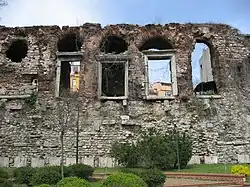 Zidul lui Teodosiu al II-lea avea trei porți, una mare centrală de aur, în care intra împăratul, între două porți mai mici, iar pe zid erau înălțate statui ale unor elefanți. Zidul lui Constantin nu a rezistat, pe când din zidul lui Teodosiu s-au păstrat mici porțiuni, acesta fiind construit între 408-413.
