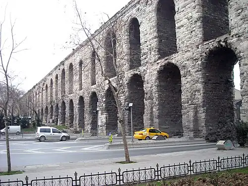 Principalul apeduct a fost construit în timpul lui Valens, apă fiind adusă de la 100 km de oraș, iar apă era păstrată în cisterne imense. Cisterna Basilica a fost construită în secolul IV și refăcută de Iustinian. Se spune că turcii au descoperit-o în timpul unei secete puternice. Există și o cisternă în interiorul Palatului Imperial, dar nu a rezistat.