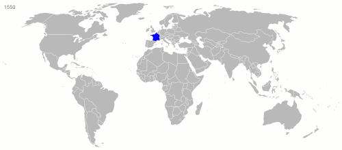 "1" semnifică faptul că țara/teritoriul a fost parte a primului imperiu colonial francez, pe când "2" faptul că țara/teritoriul a fost parte a celui de-al doile imperiu colonial francez. "RF" semnifică faptul că țara/teritoriul este parte a Republicii Franceze din zilele noastre.