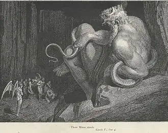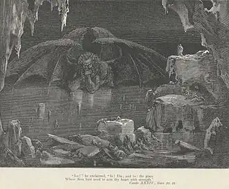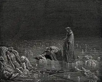 în Infernul dantesc, scriitorul este însoțit de poetul Virgil în pogorârea pe tărâmul celor fără tihnă. Infernul apare în imaginarul lui Alighieri drept o pâlnie a căror cercuri concentrice și descendente duc treptat către inima Iadului și în proximitatea lui Lucifer. Dante reușește să ierarhizeze tarele și slăbiciunile omenești, iar pentru fiecare lipsă a virtuții, răsplata în viața de apoi este echivalentă și cinstită în ferocitatea ei.