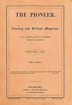 ![]() The Pioneer, Vol. I, No. I, Drew and Scammell, Philadelphia, ianuarie 1843 | |